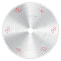 Carbide-Tipped blade ideal for cutting aluminum and non-ferrous metals incorporates Tri-Metal Brazing which consists of copper sandwiched between two layers of silver alloy to create a stronger, more impact-resistant bond between the carbide and the blade body.